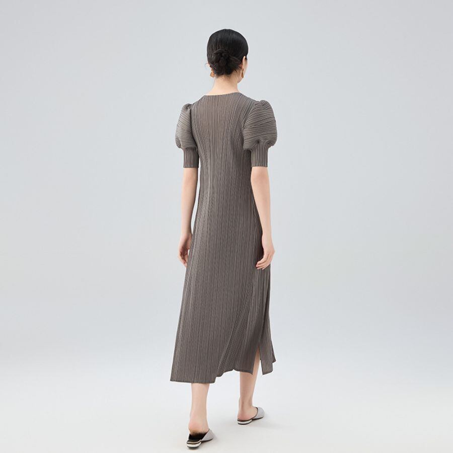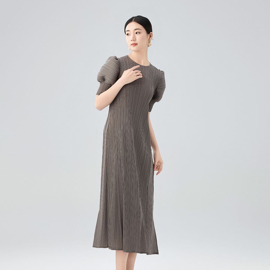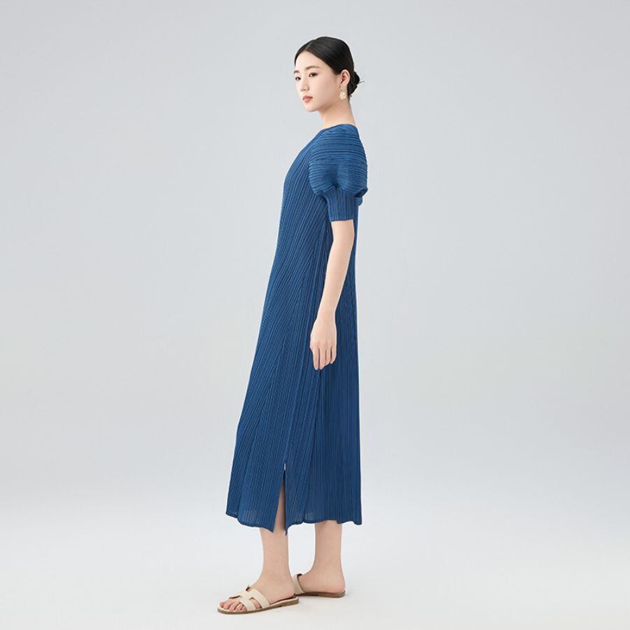 ワンピース 夏 レディース ロングワンピース 半袖 パフスリーブ バルーンスリーブ シワ加工 体型カバー WFD102 Chillizen