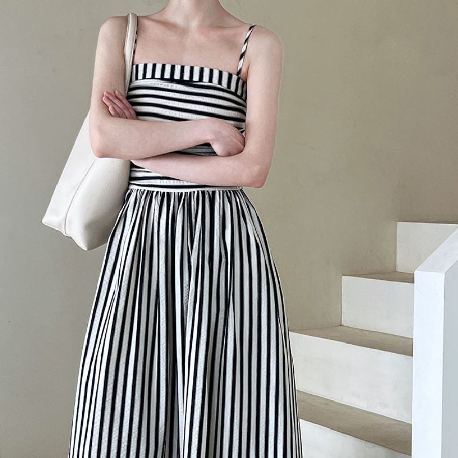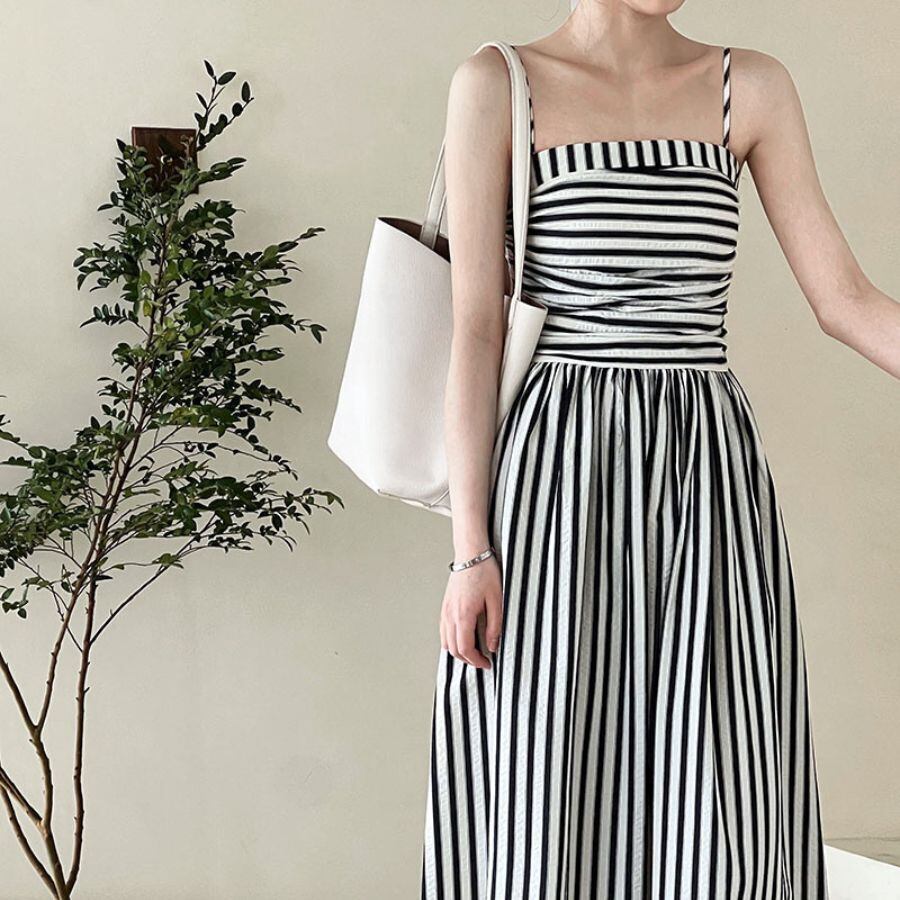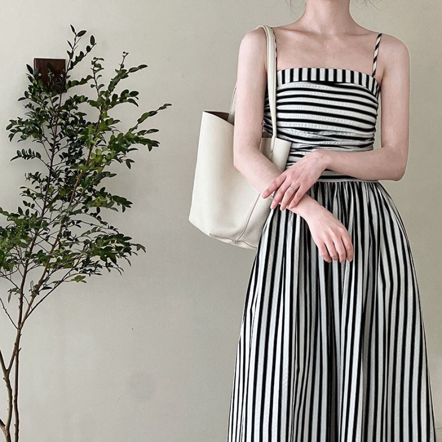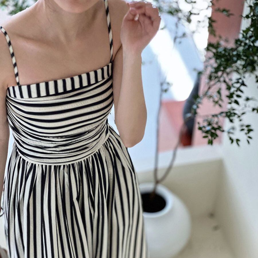 ワンピース 春 夏 レディース サスペンダー しま 縞模様 シンプル おしゃれ スリム 人気 通勤 通学 WFD63 Chillizen