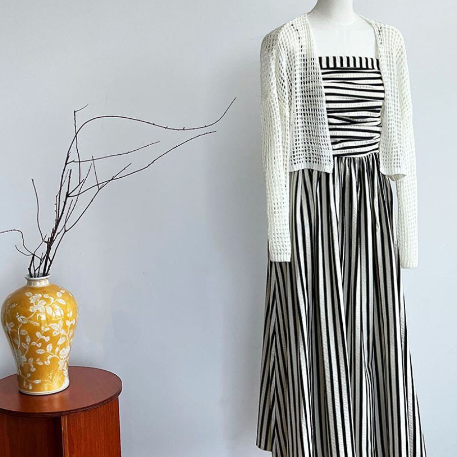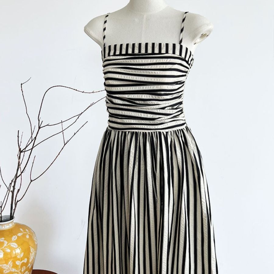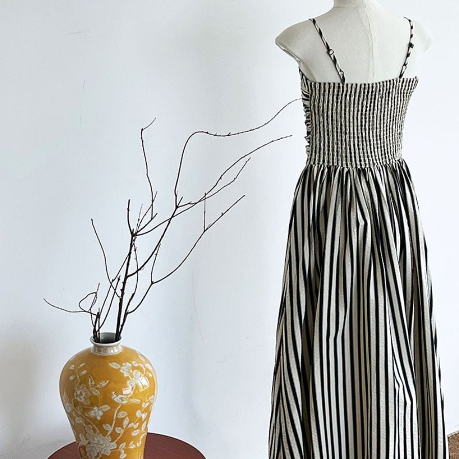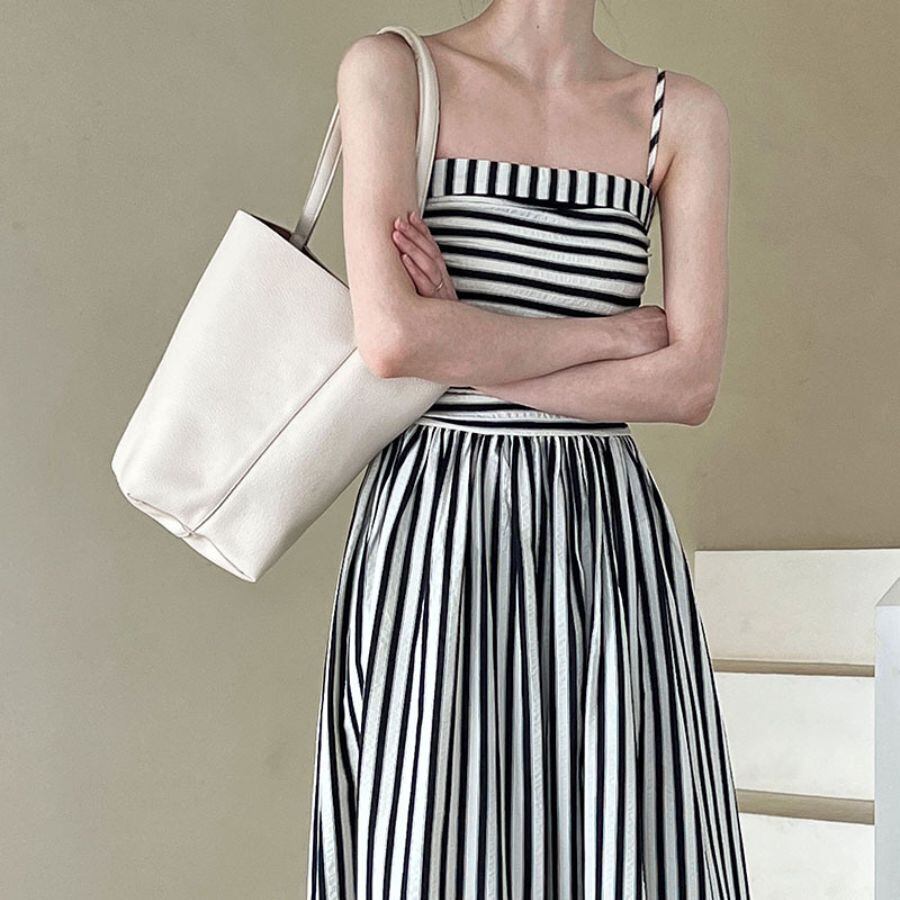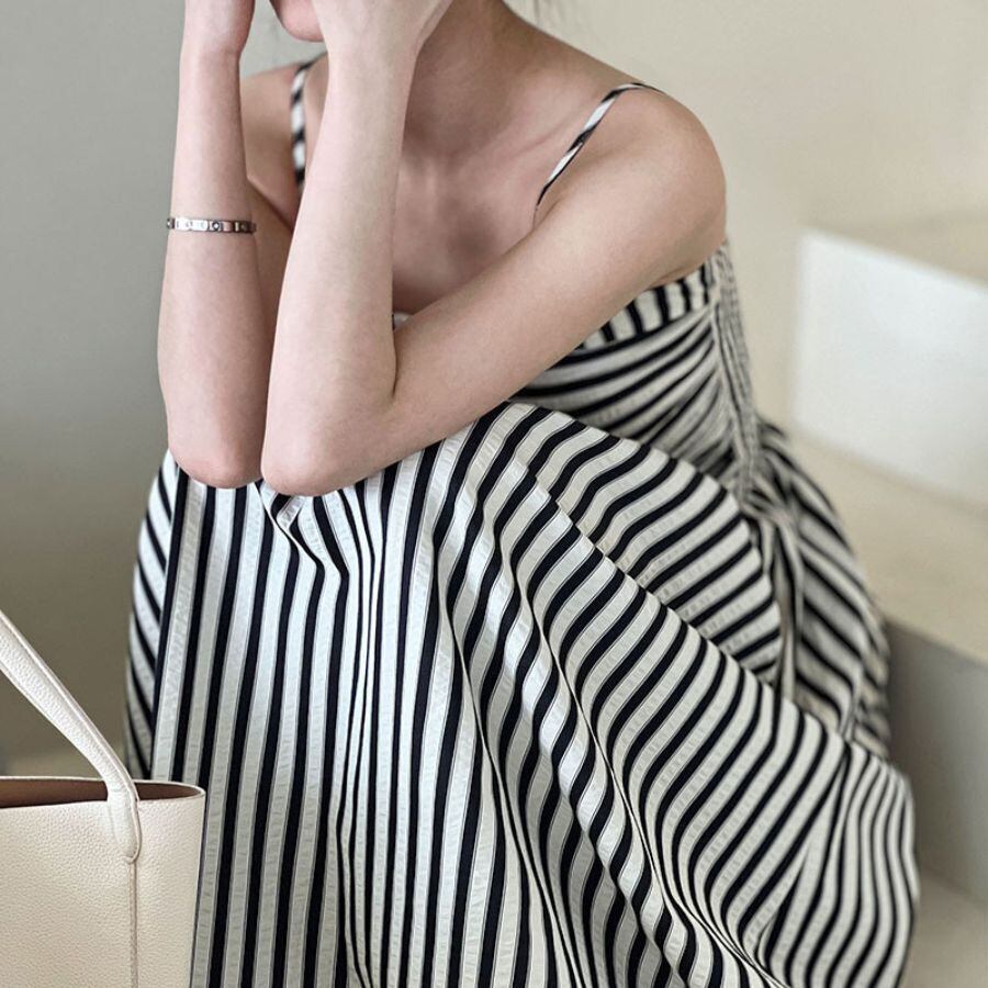 ワンピース 春 夏 レディース サスペンダー しま 縞模様 シンプル おしゃれ スリム 人気 通勤 通学 WFD63 Chillizen