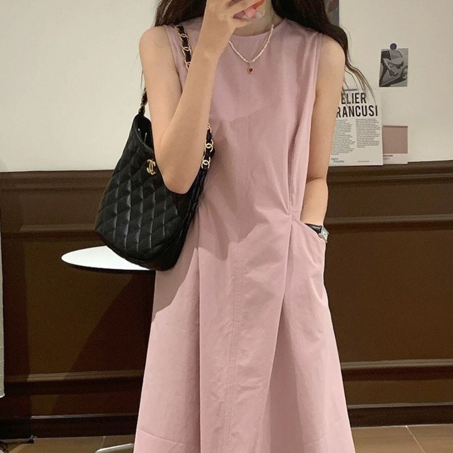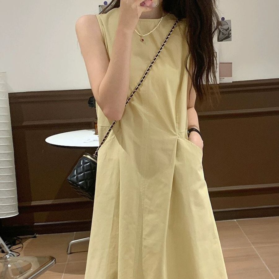 ワンピース レディース ドレス 夏 袖なし 着回しやすい インナー ノースリーブ ポケット付 お洒落 マキシ WFD43 Chillizen
