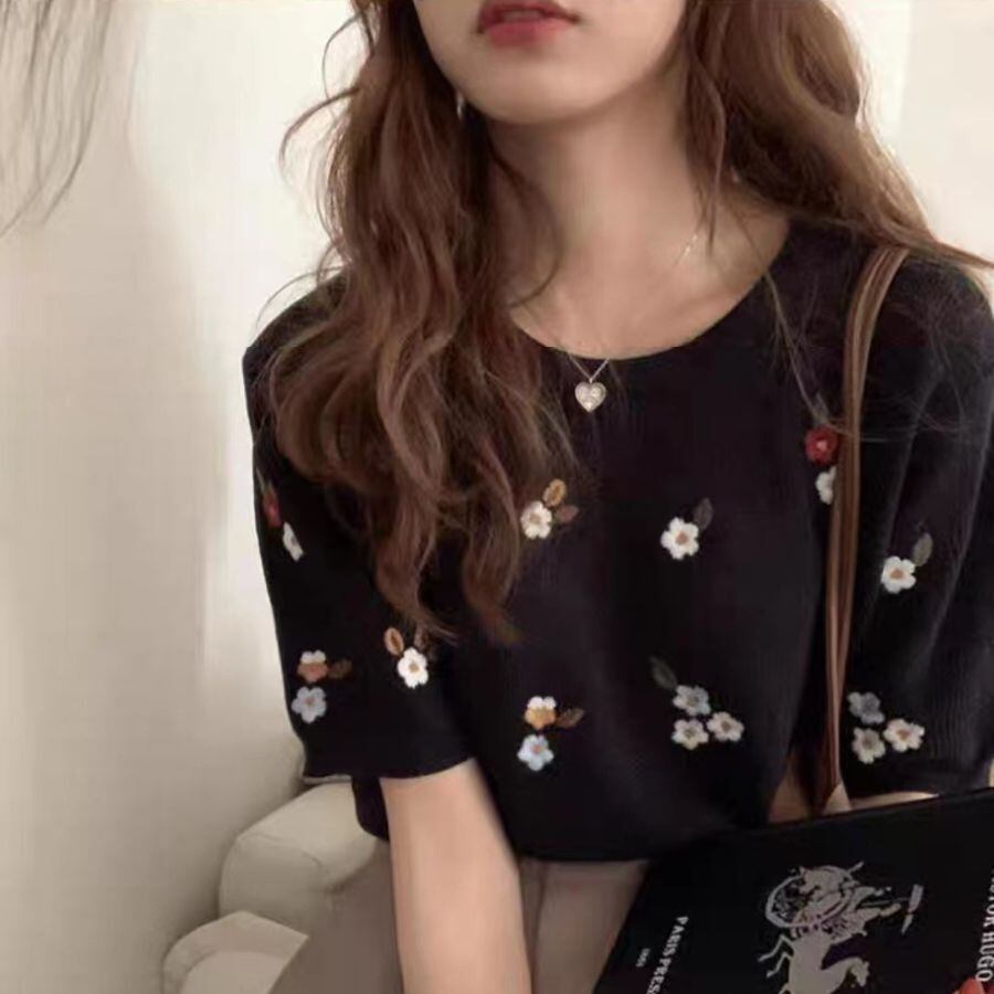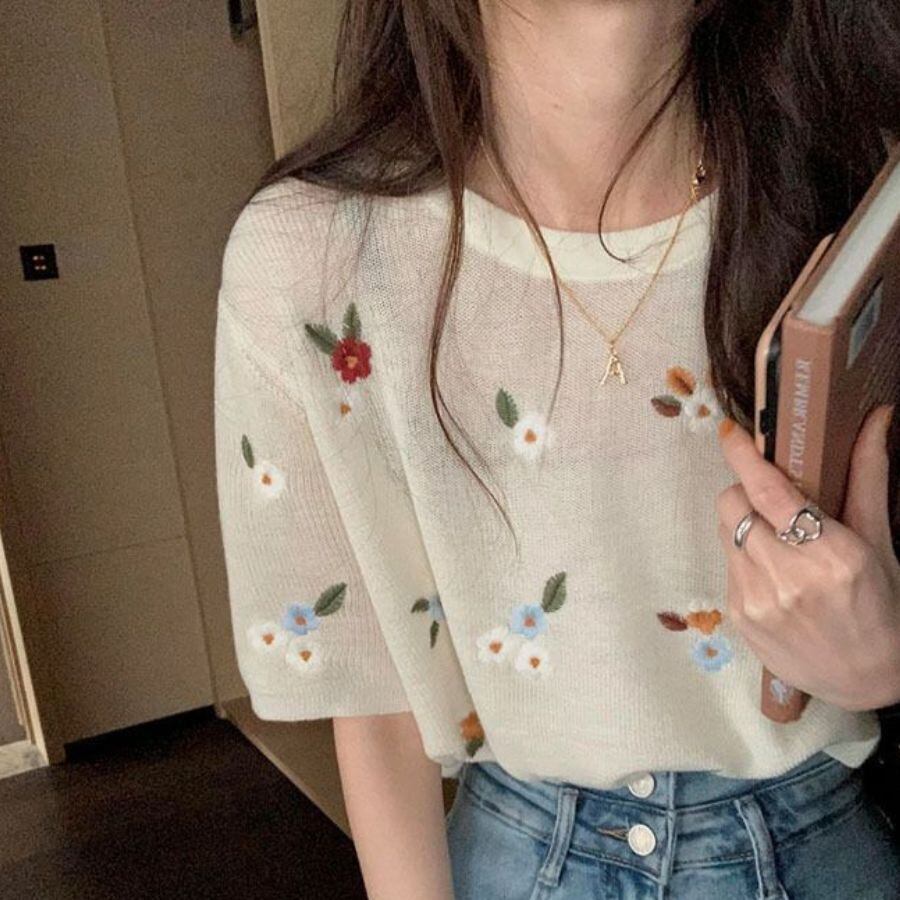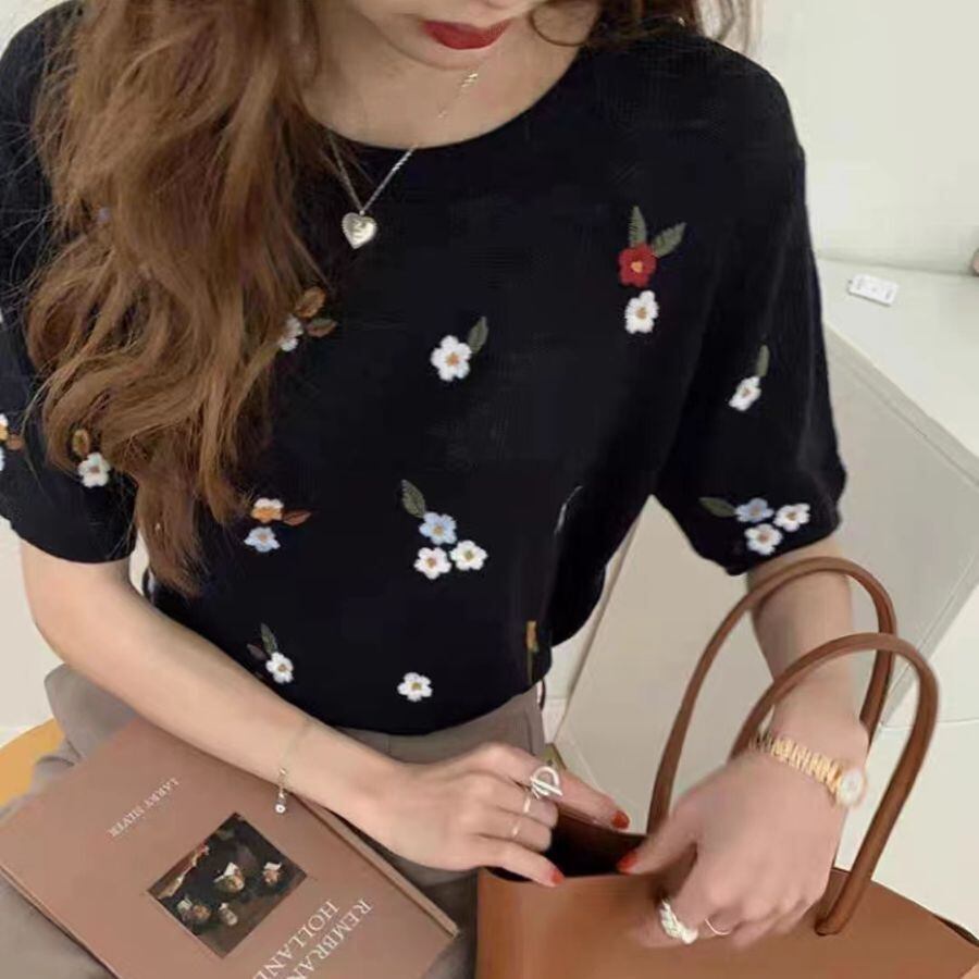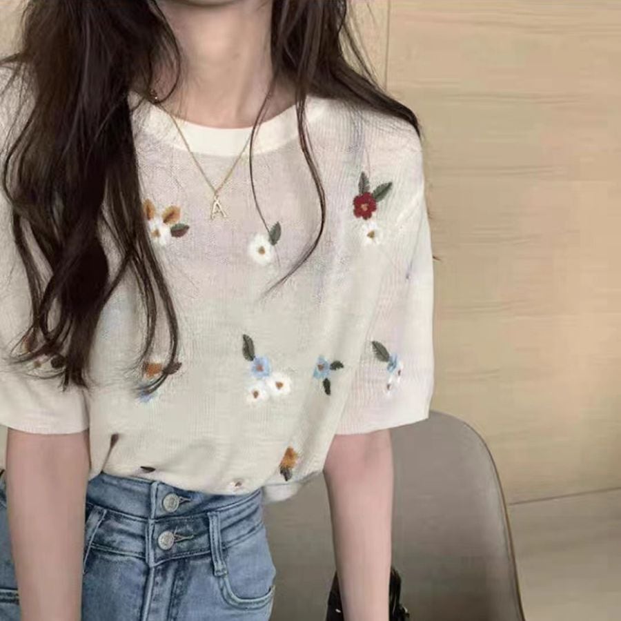 半袖 Tシャツ 夏 洗練 刺しゅう ニット トップス レディース シースルー カットソー 花柄 カジュアル WFT68 Chillizen