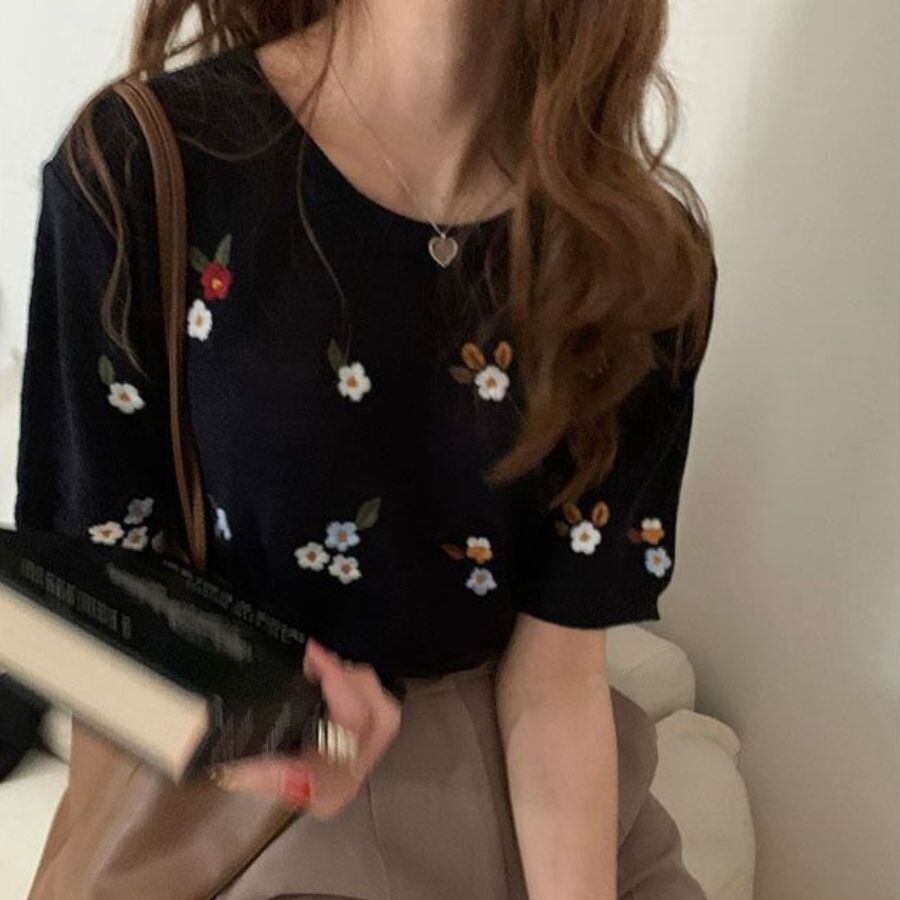 ◆「刺しゅう 小花」:可愛らしい小花の刺繍が施された半袖Tシャツです。繊細な刺繍が上品な印象を与え、華やかさを演出します。自然な魅力が詰まったデザインです。