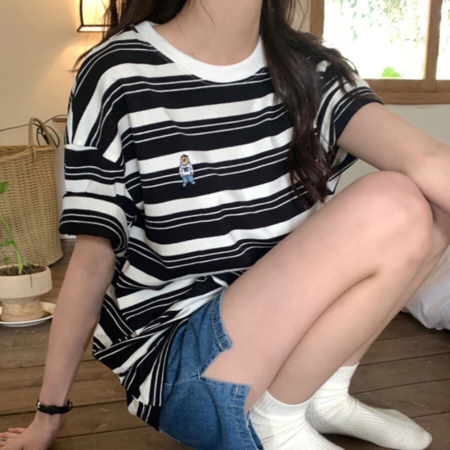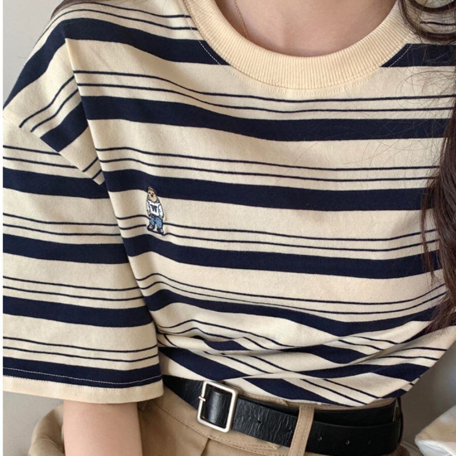 Tシャツ ボーダー かわいい 半袖 刺繍 夏 カジュアル レディース トップス 人気 WFT62 Chillizen