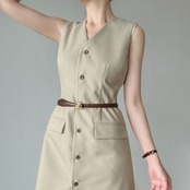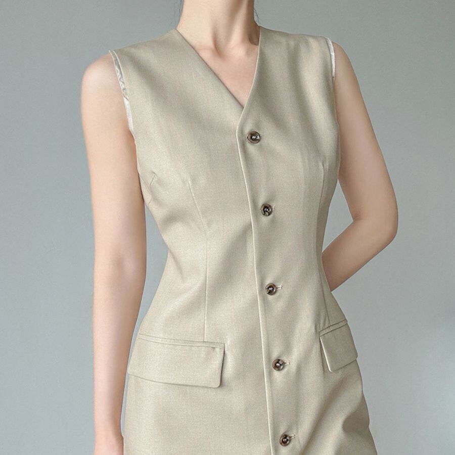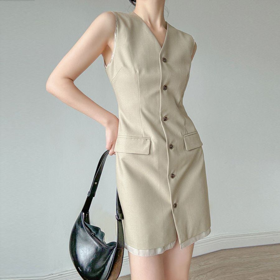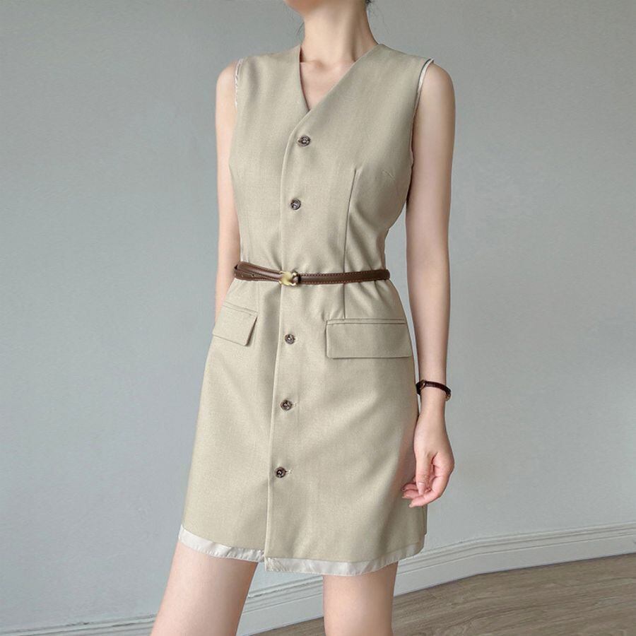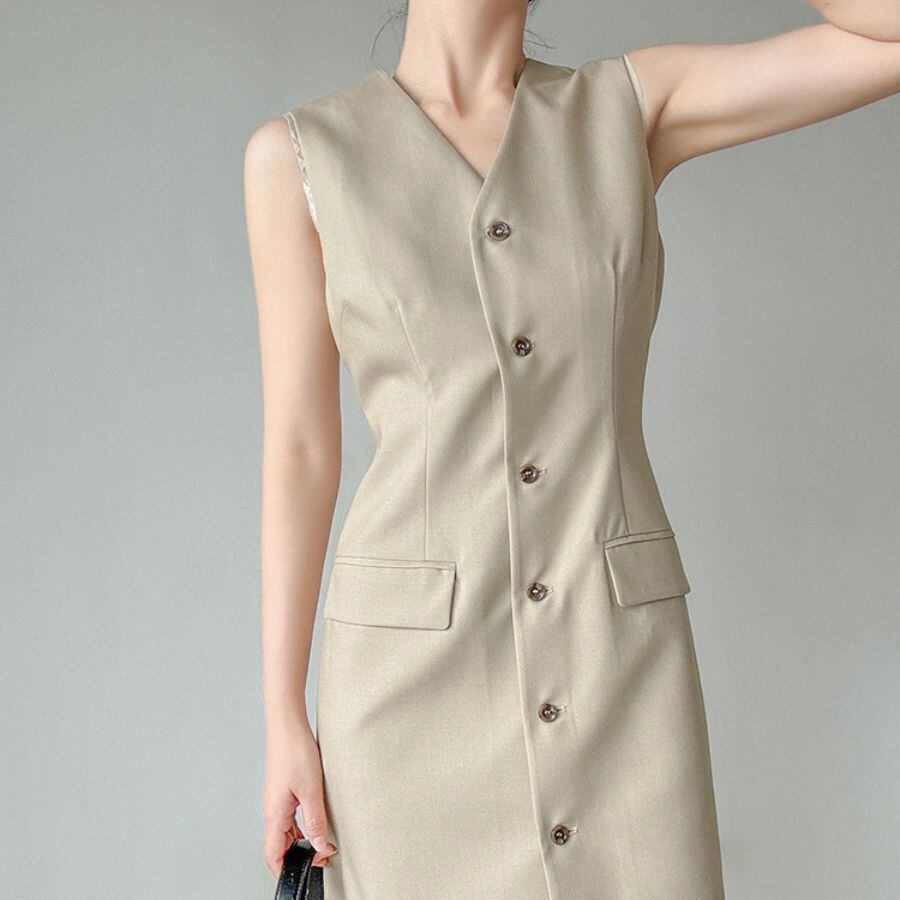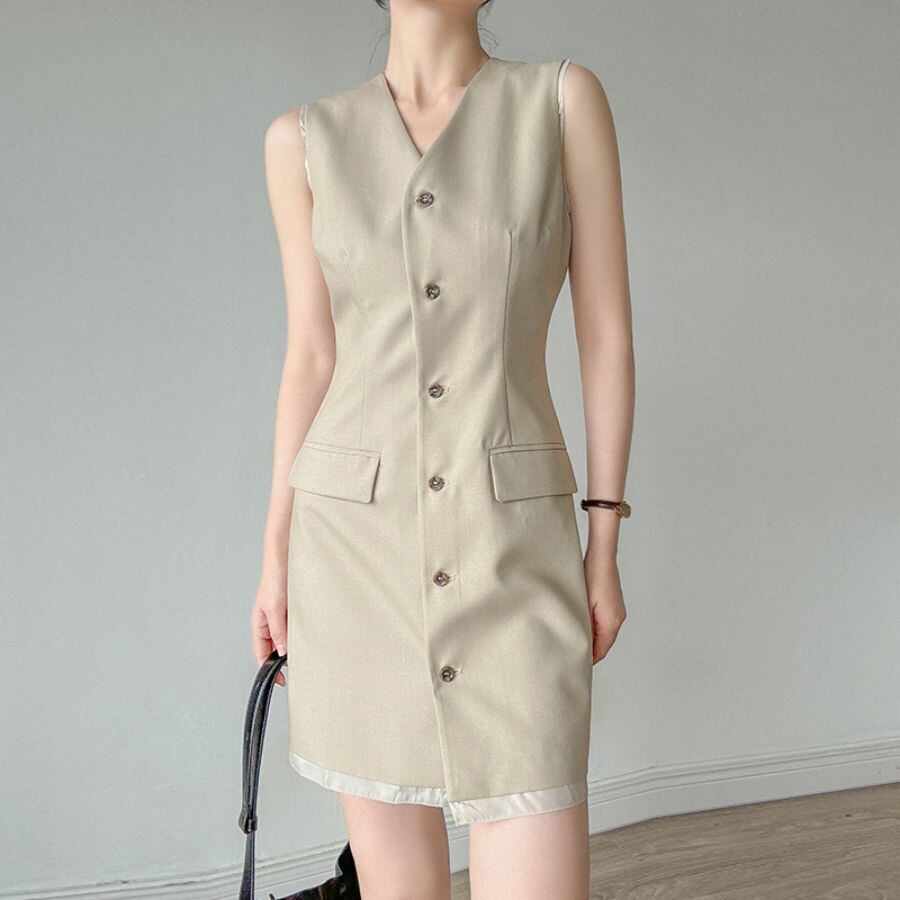 ワンピース 夏 レディース 通勤 OL 薄手 ノースリーブ カジュアル ベスト オシャレベスト Vネック WFD162 Chillizen