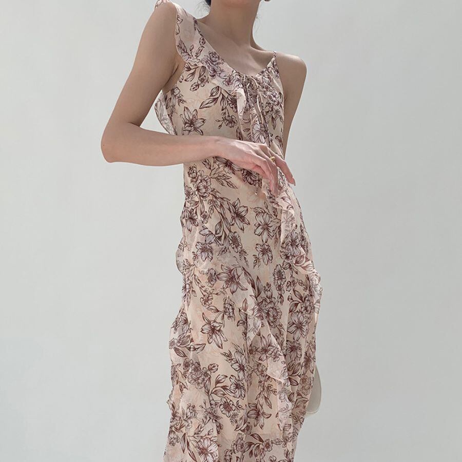 ワンピース 夏 花柄 Aライン ノースリーブ マキシワンピ ロング丈 ロングワンピ おしゃれ きれいめ WFD164 Chillizen