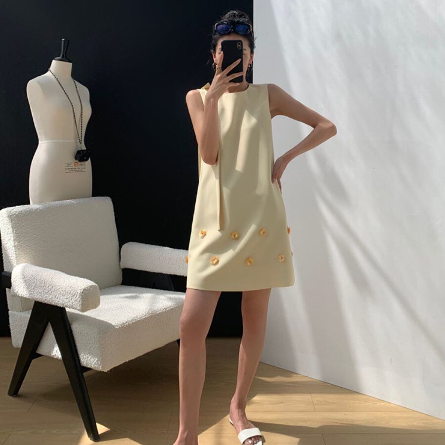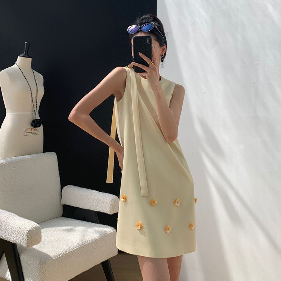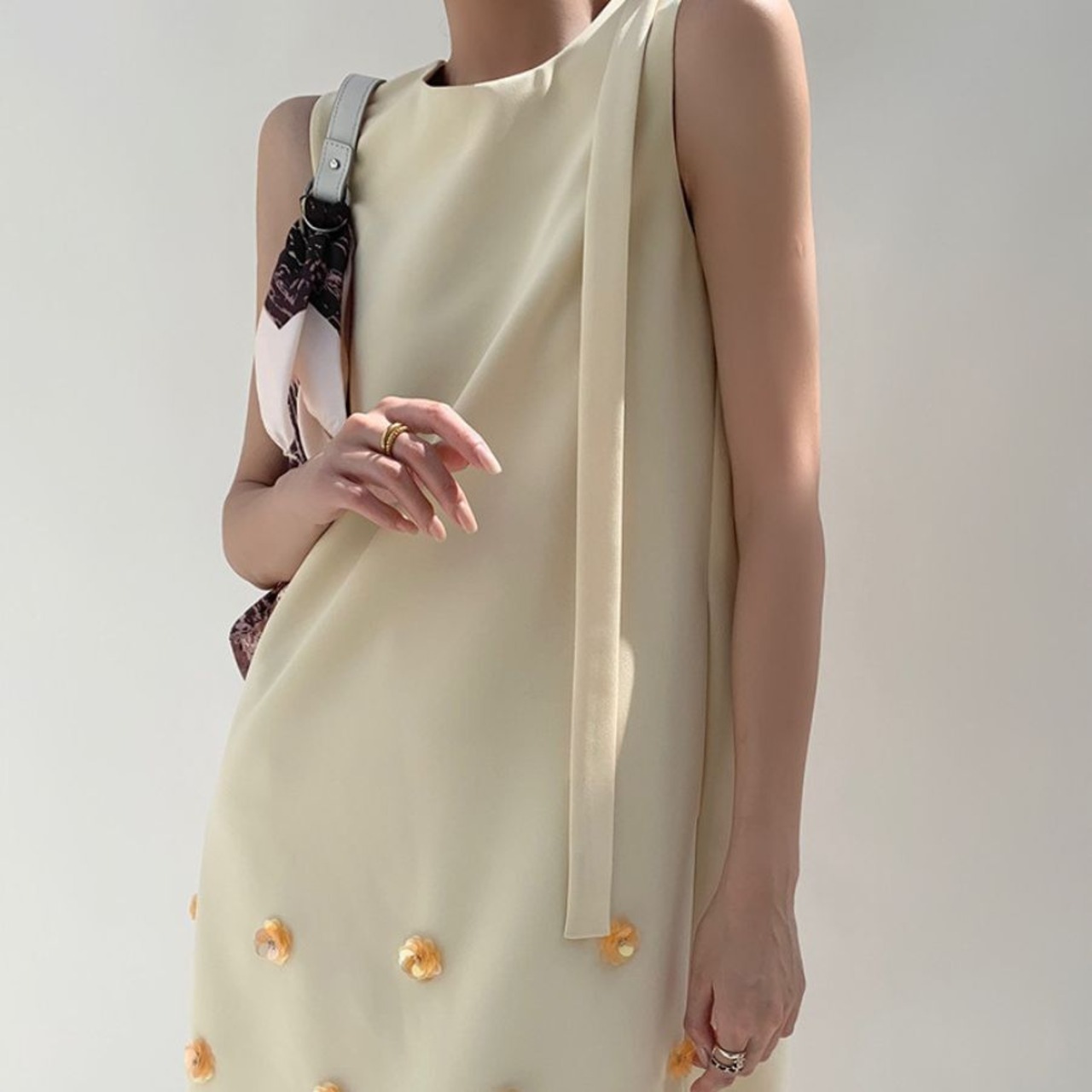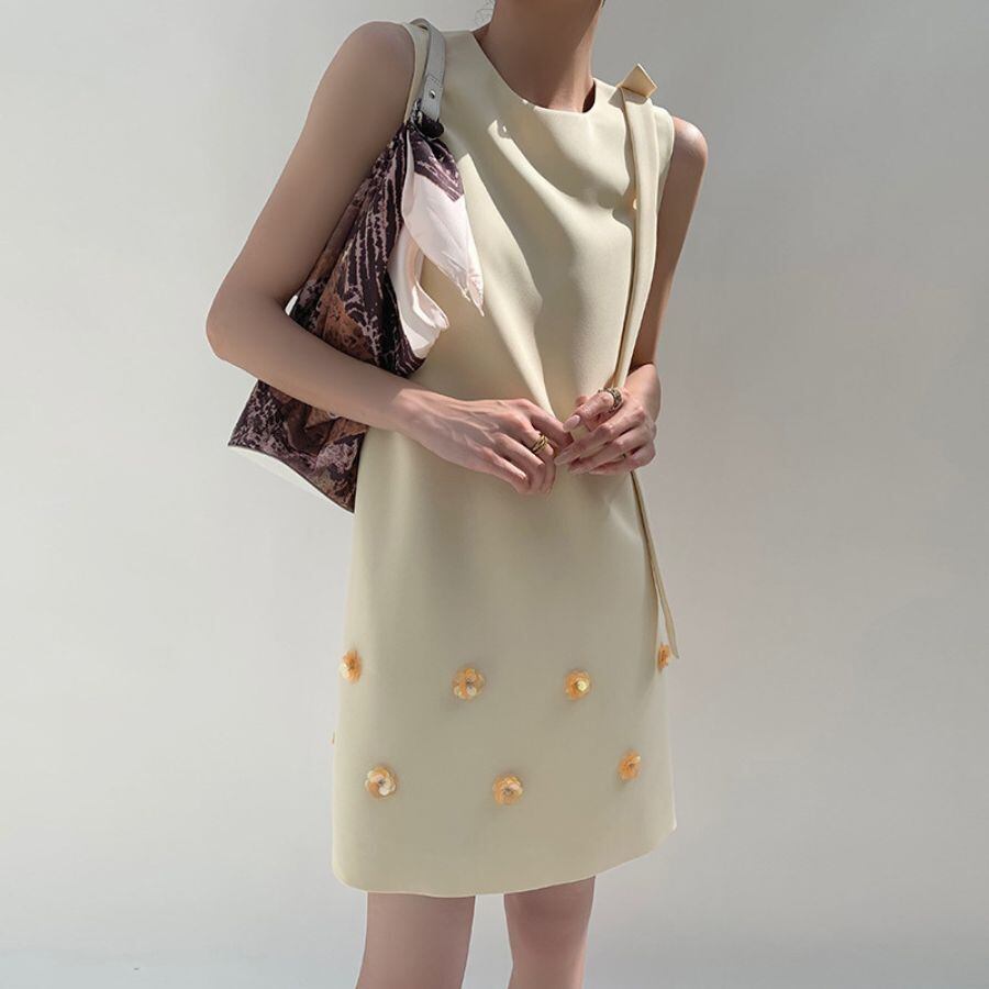 ワンピース 夏 レディース ホリデー aライン 優しい 立体 花 ドレス 女性 スカート おしゃれ 大人 WFD160 Chillizen