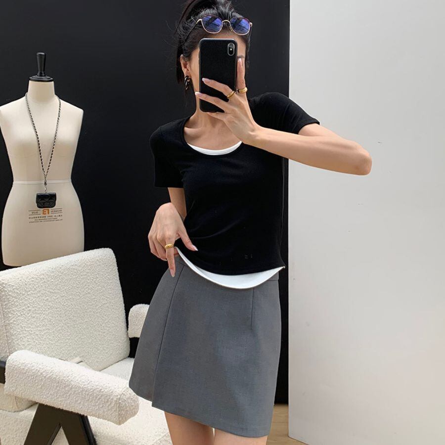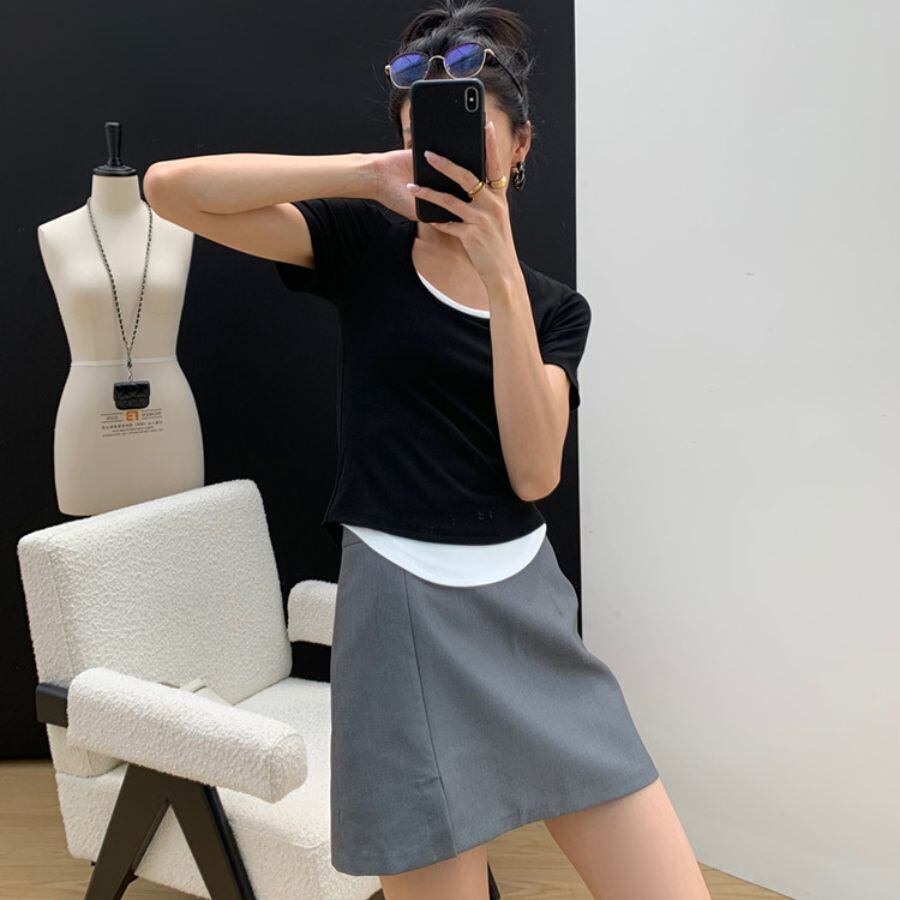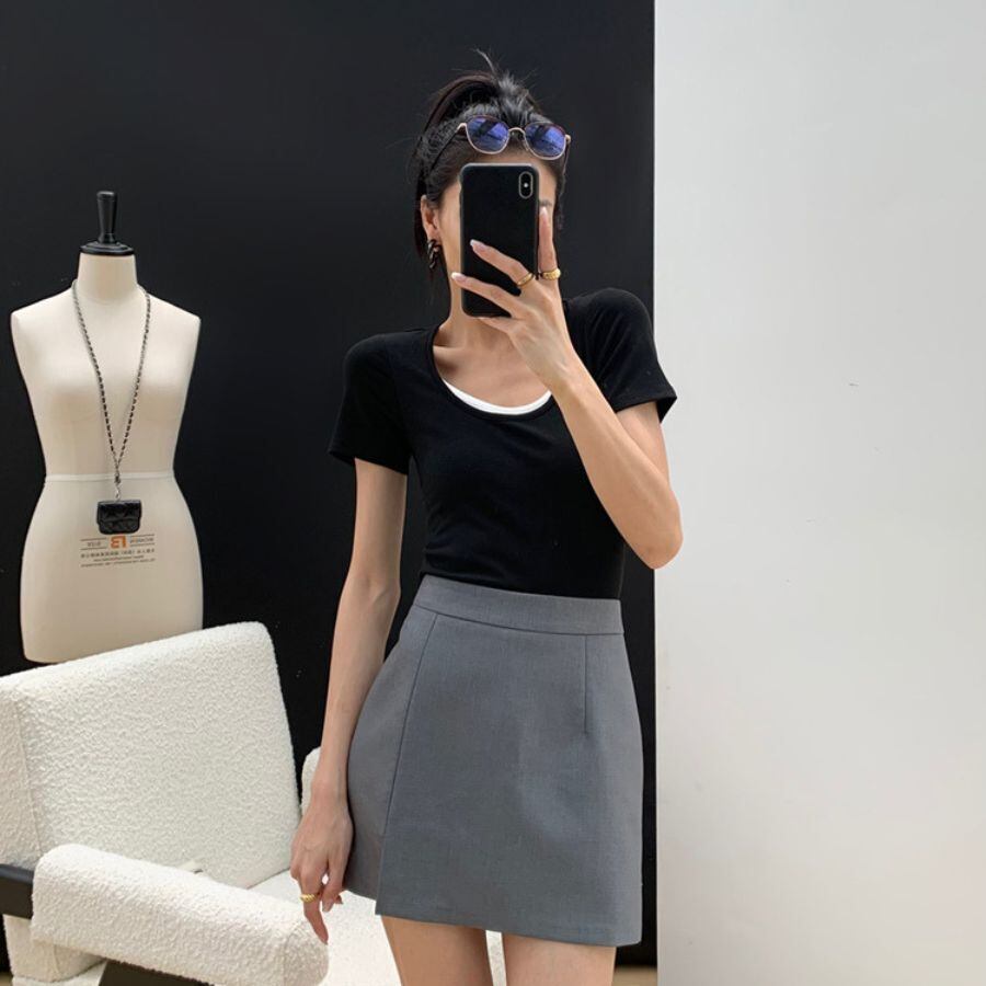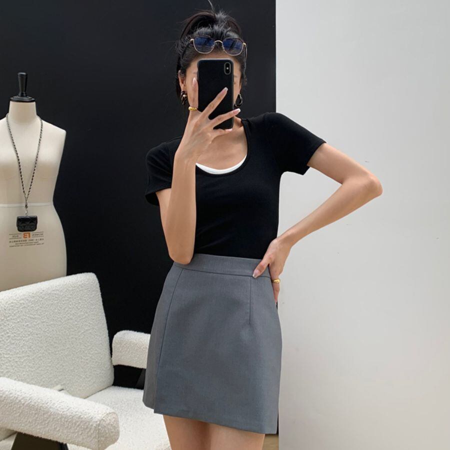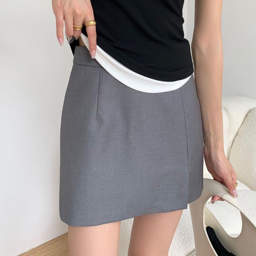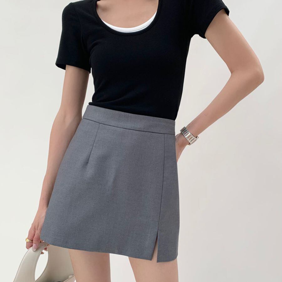 ミニスカート 夏 ハイウエス Aライン スリット 無地 ファッション ボトムス オフィス カジュアル WFD167 Chillizen