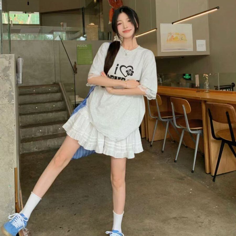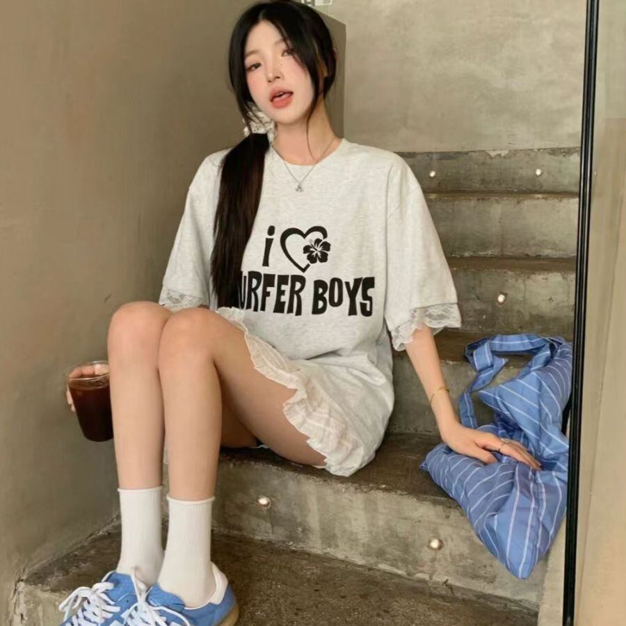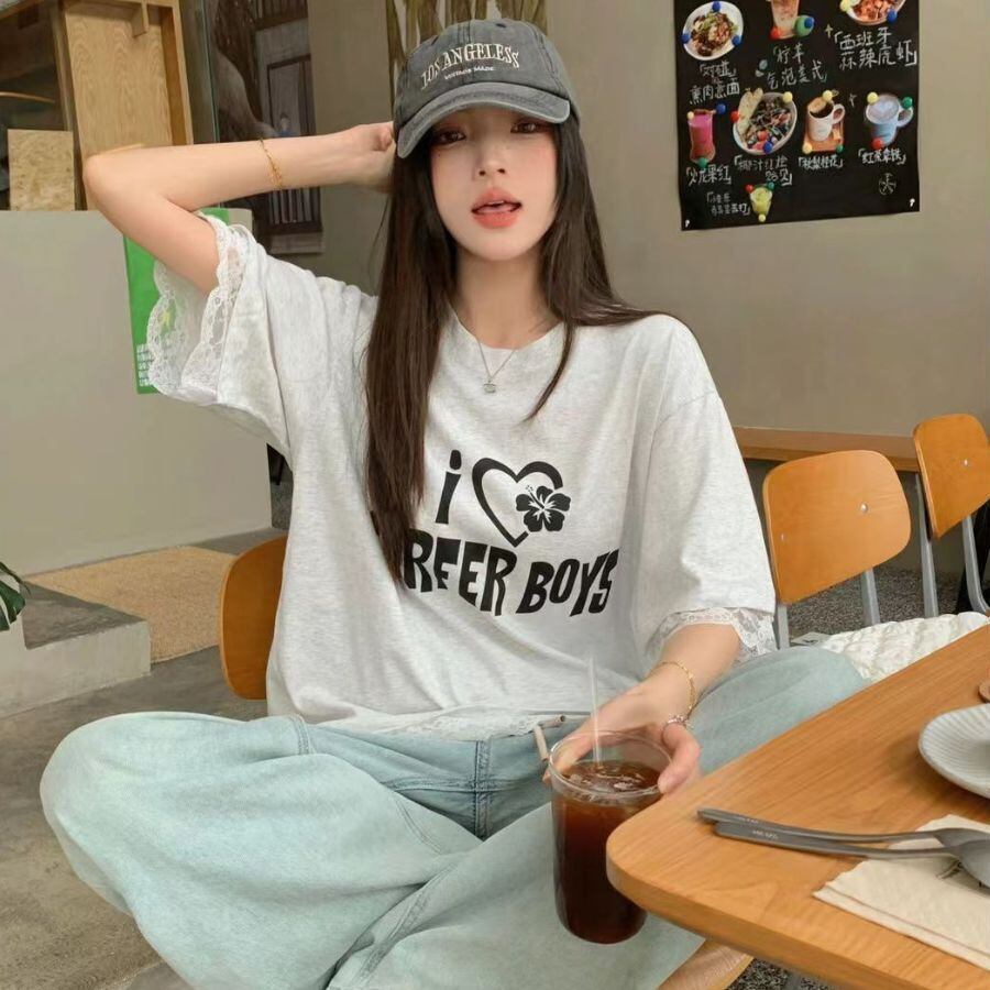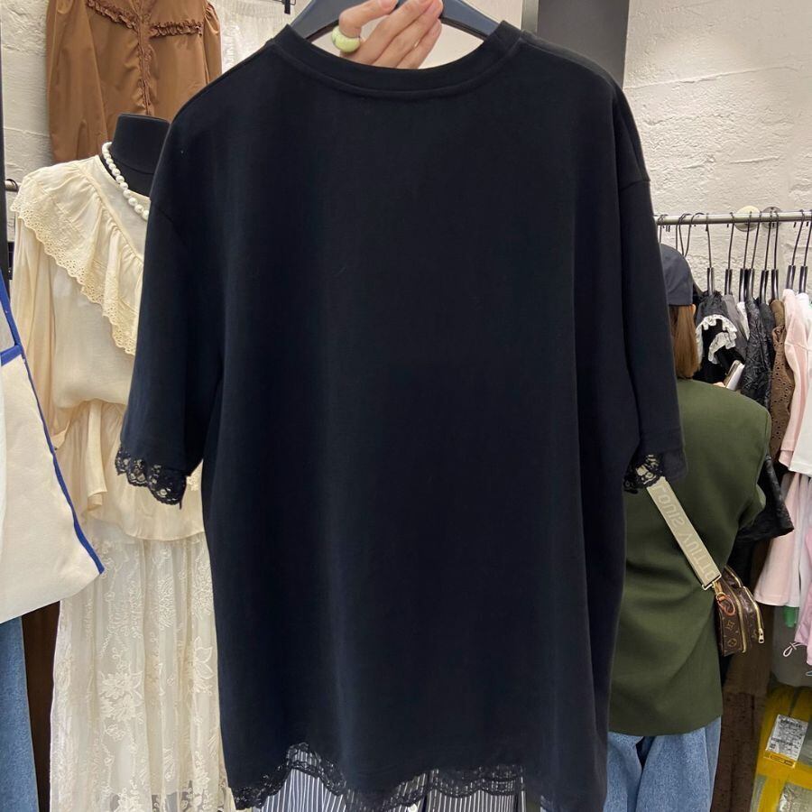 Tシャツ 夏 レディース ップス プルオーバー 半袖 半そで 丸首 レース シアー 薄手 ゆったり WFT289 Chillizen