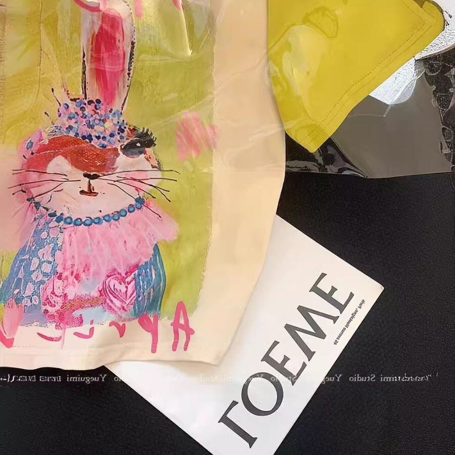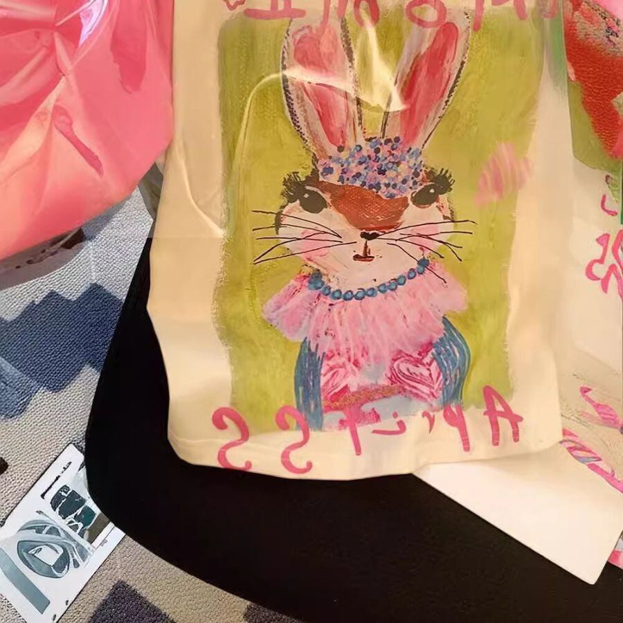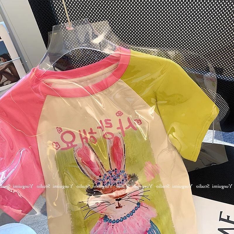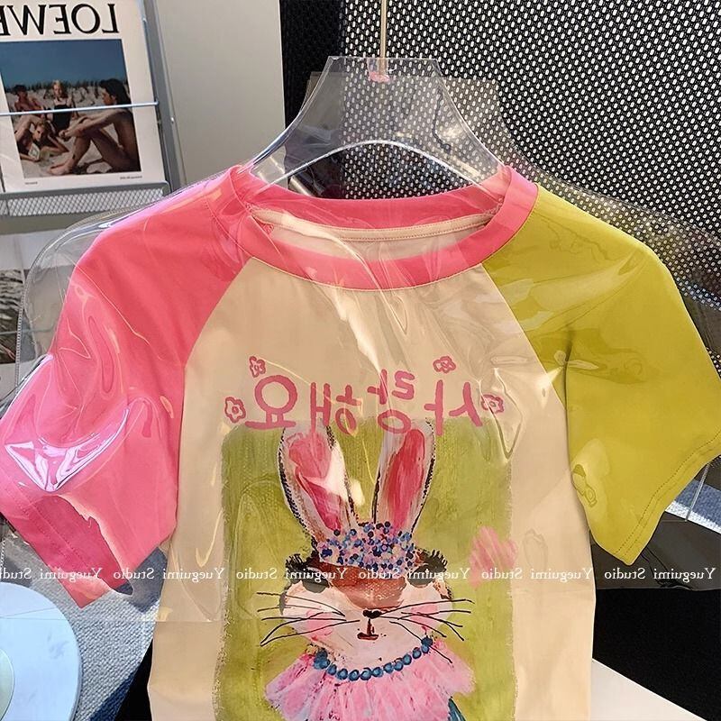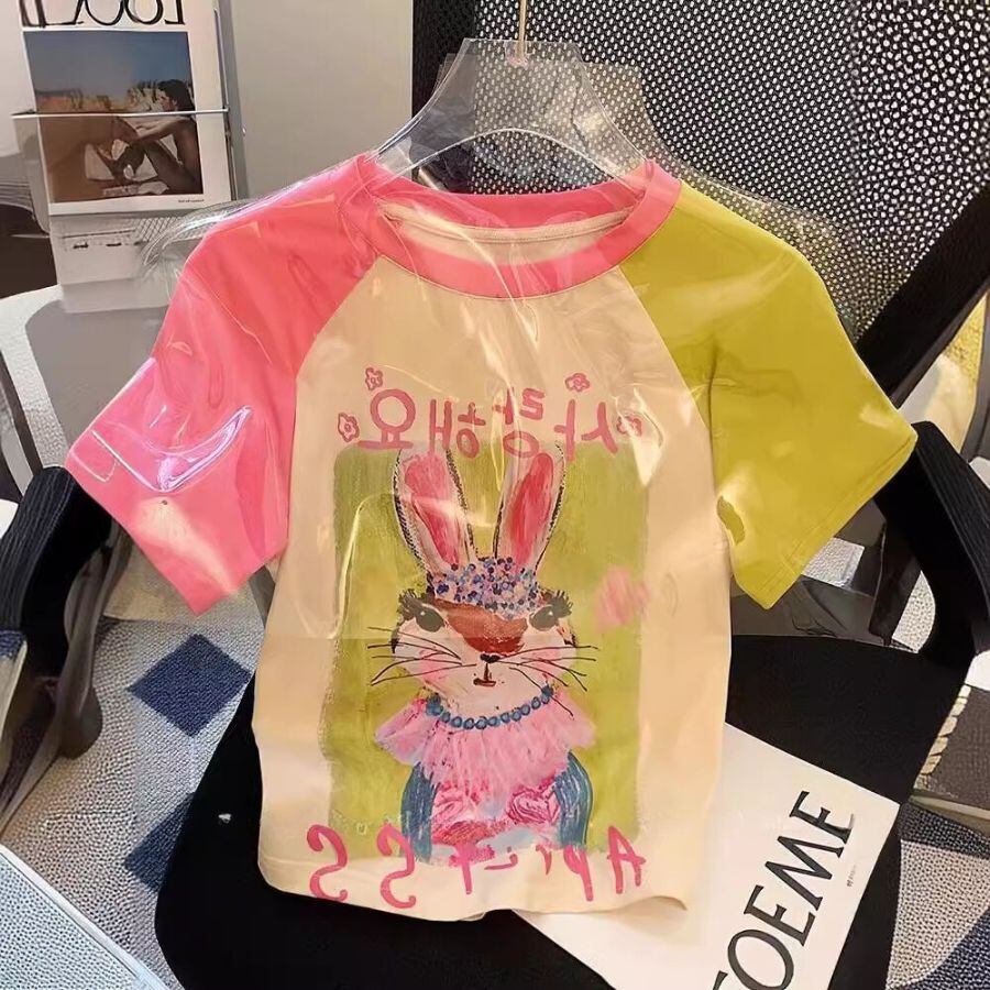 Tシャツ 夏 レディース 半袖 可愛い ウサギ プリント 薄手 丸首 トップス カジュアル ゆったり WFT290 Chillizen