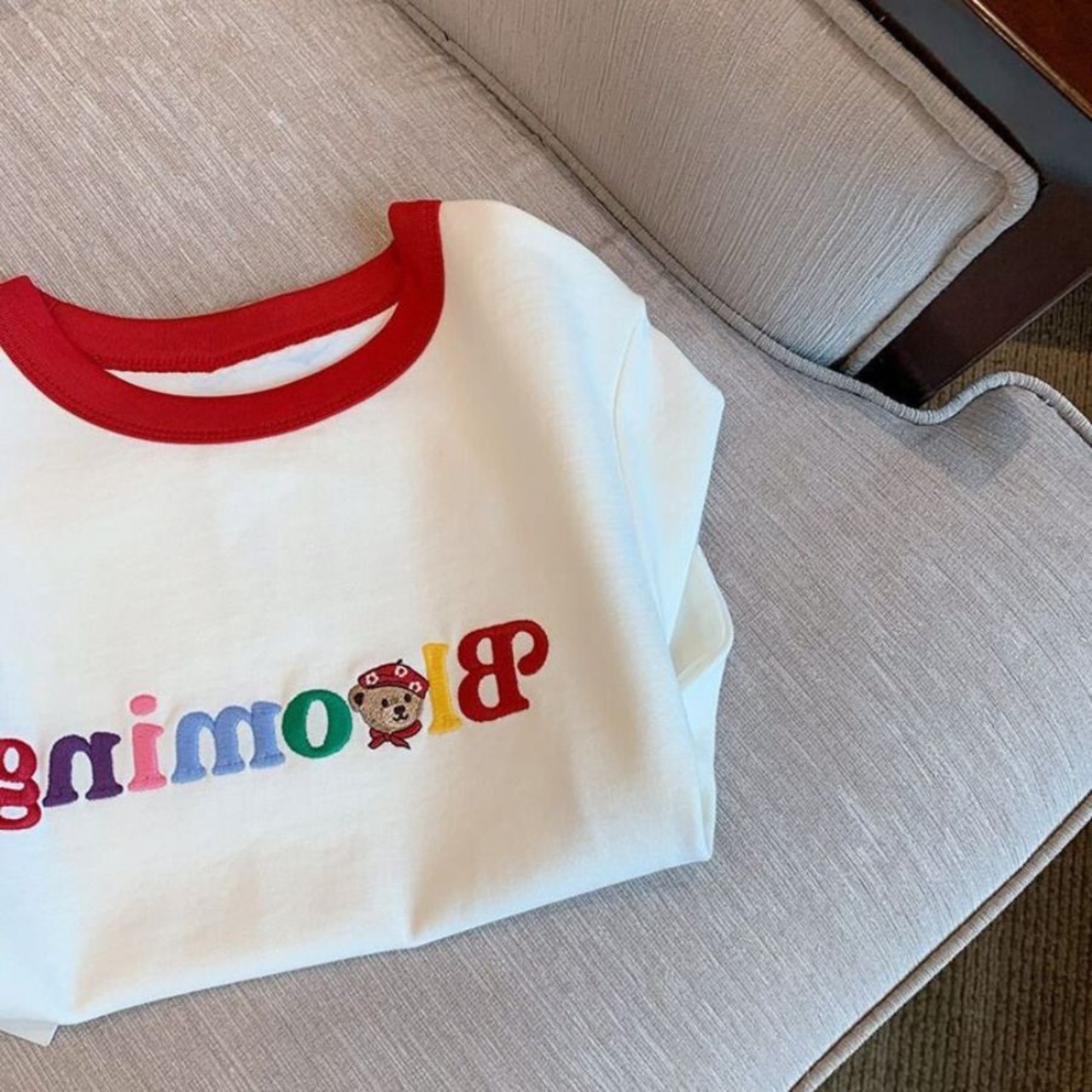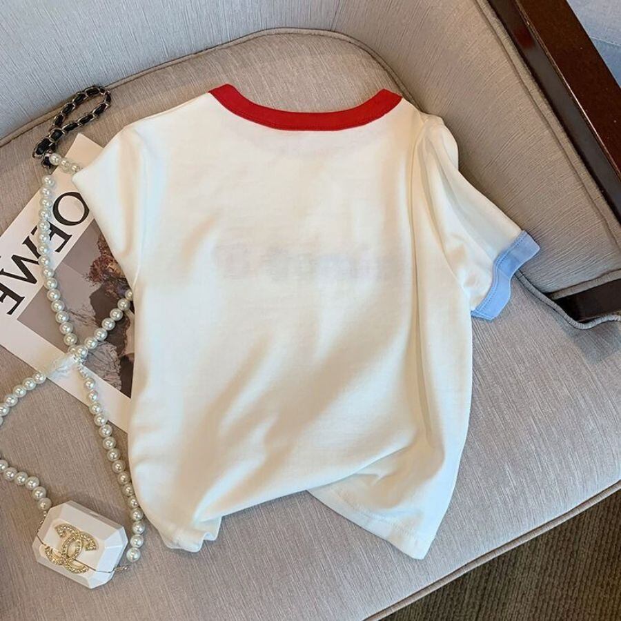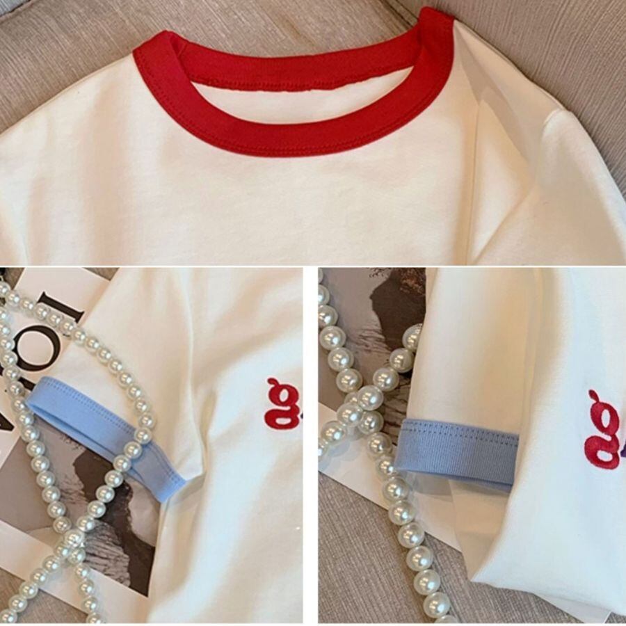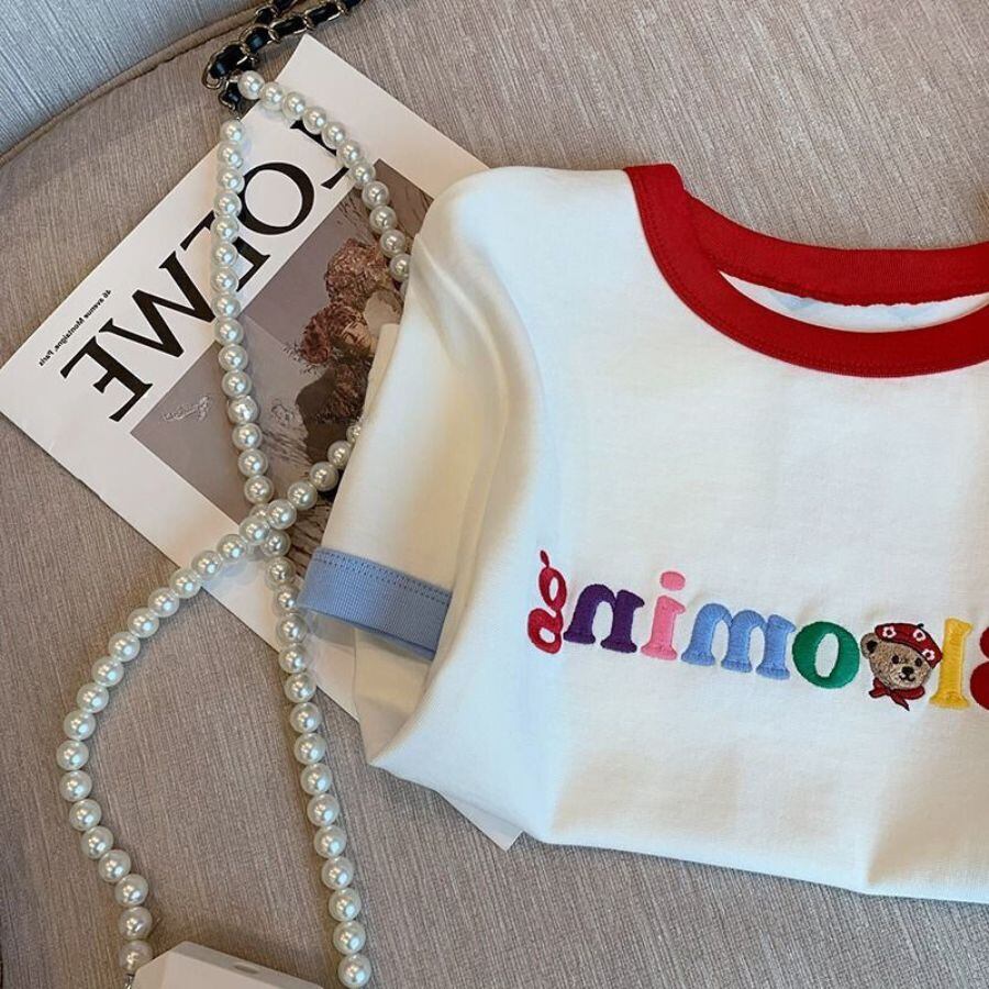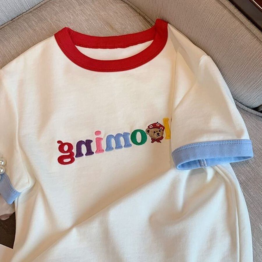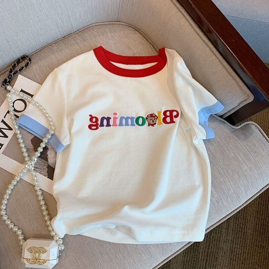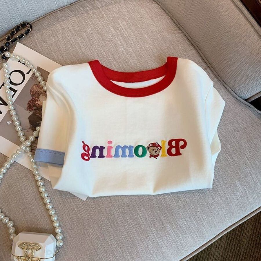 Tシャツ 夏 半袖 丸首 涼しい ゆったり 綿 刺繡 カラー トップス カジュアル レディース 無地 WFT285 Chillizen