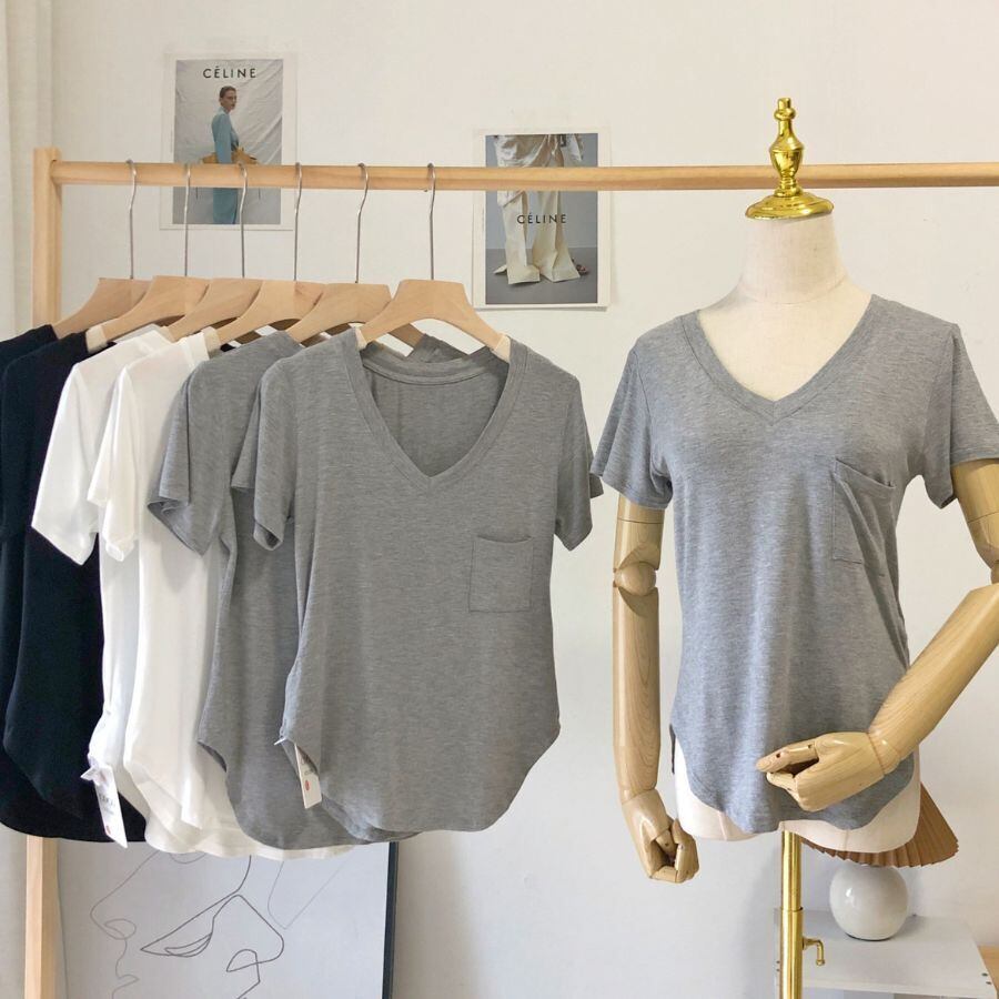 Tシャツ 夏 トップス レディース Vネック 無地 シンプル きれいめ ゆったり 定番 黒 白 グレー WFT283 Chillizen