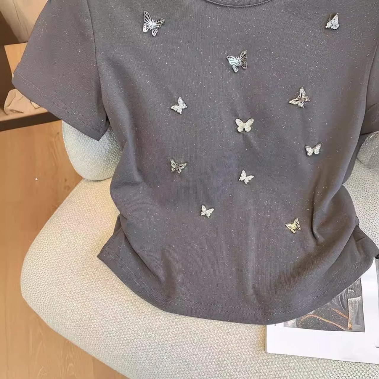 Tシャツ 夏 薄手 蝶 半袖 トップス 通勤 カジュアル 可愛い 丸首 おしゃれ きれいめ オシャレ WFT278 Chillizen