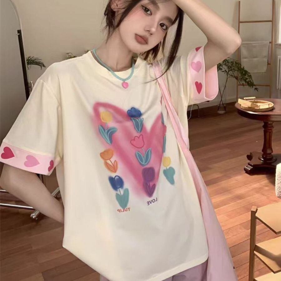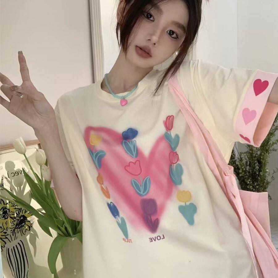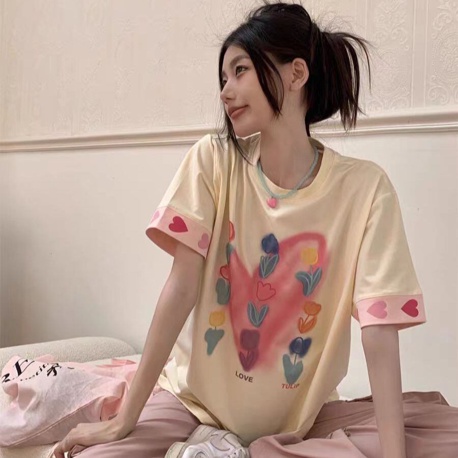 Tシャツ 夏 レディース ファッション 立体 花 半袖 コットン ラウンドネック カジュアル トップス WFT280 Chillizen