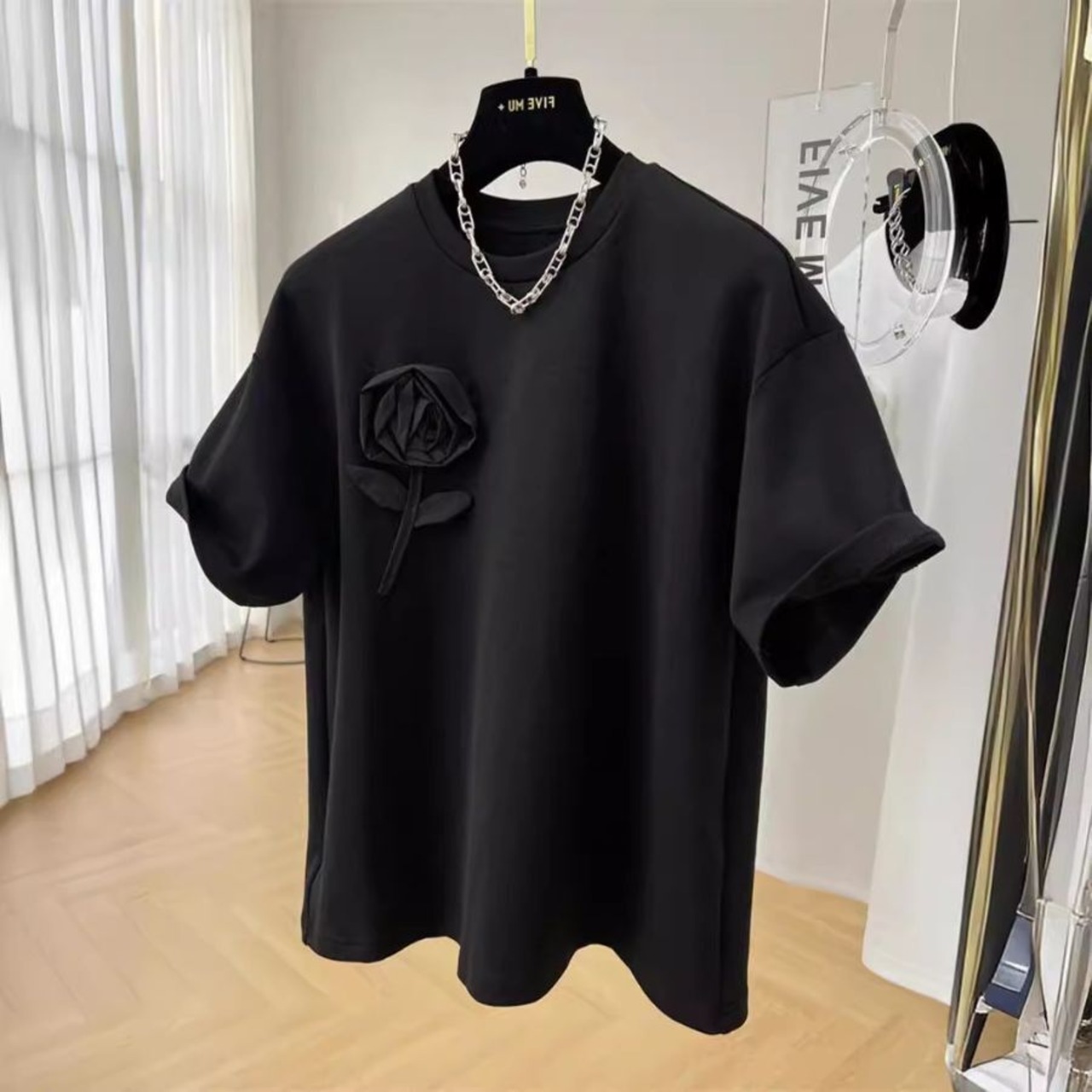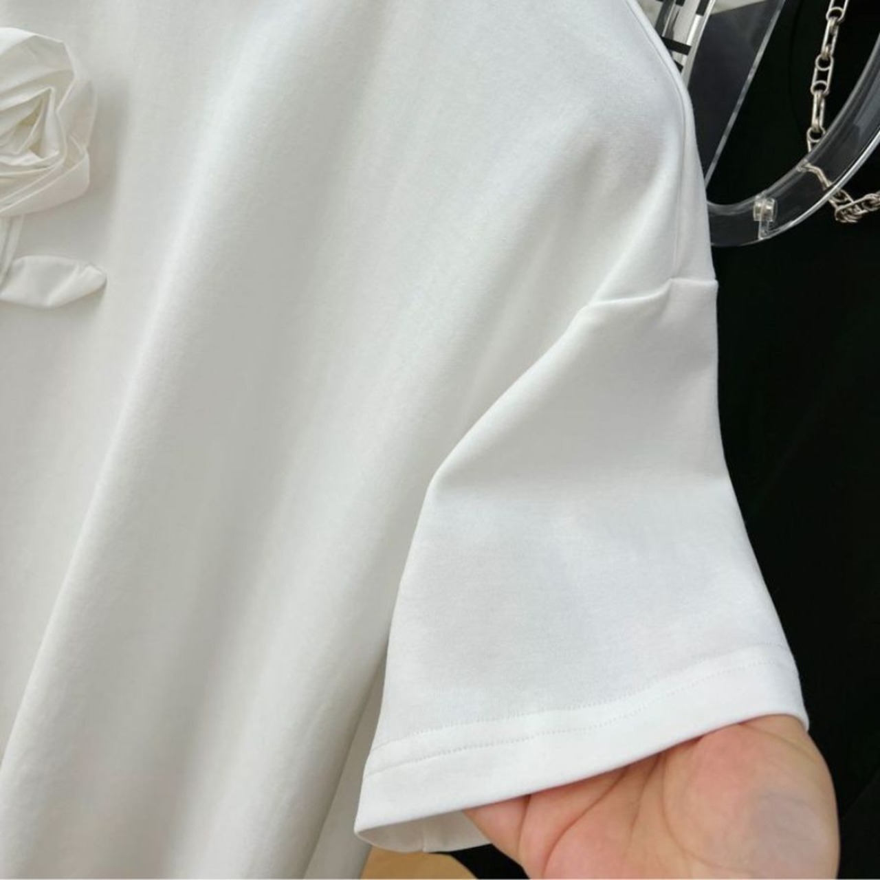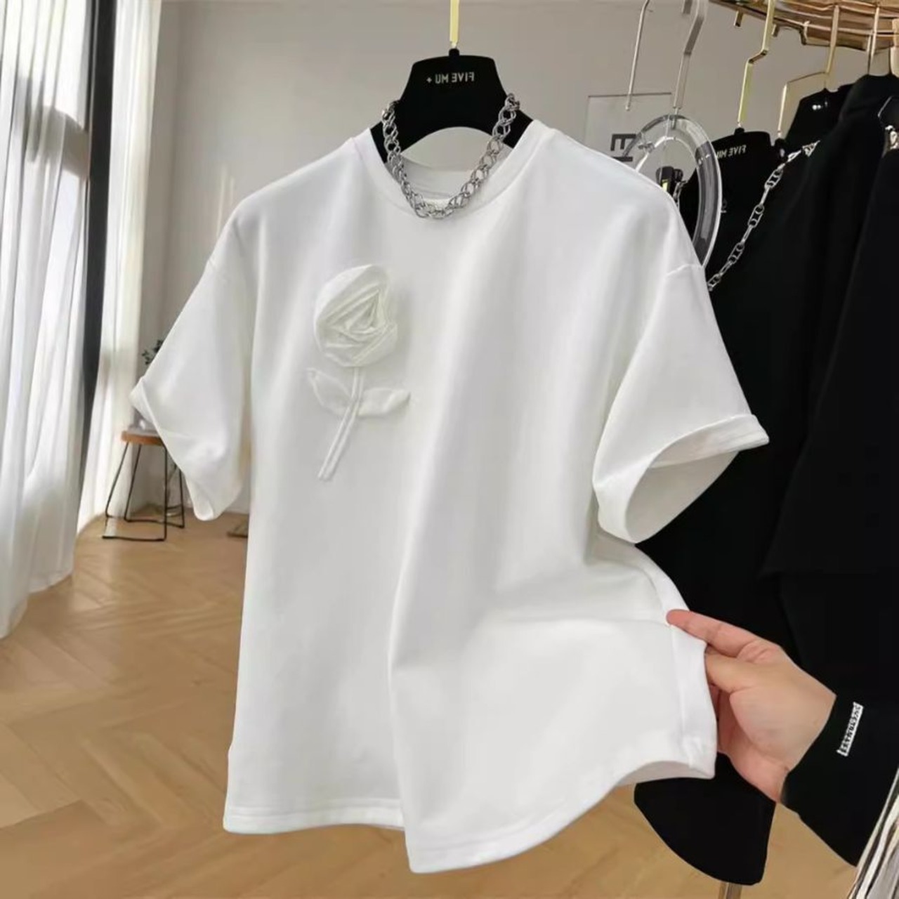 Tシャツ 夏 立体 花柄 半袖 ラウンドネック レディース 通勤 カジュアル 半袖 可愛い 無地 トップス WFT279 Chillizen