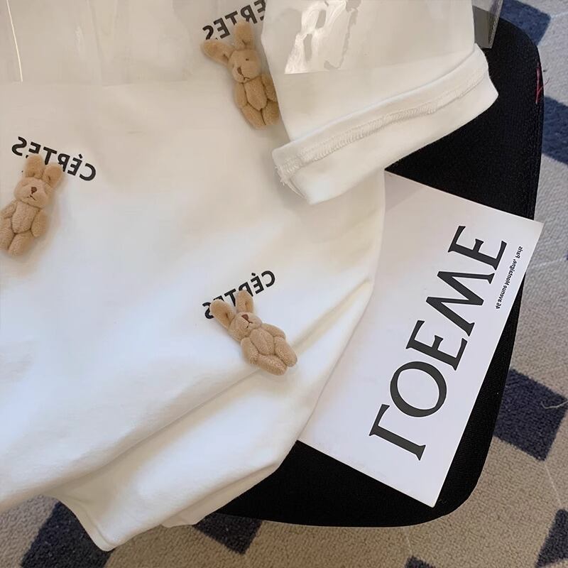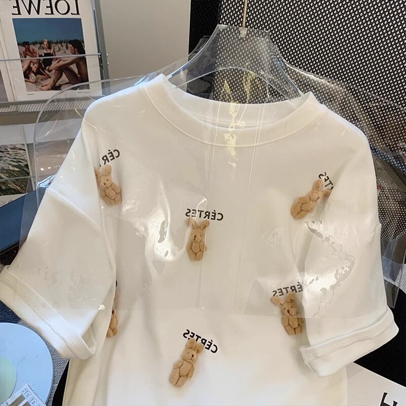 Tシャツ 夏 かわいい クマ柄 オシャレ カジュアル 綿 半袖 ゆったり シンプル ナチュラル 柔らかい WFT275 Chillizen