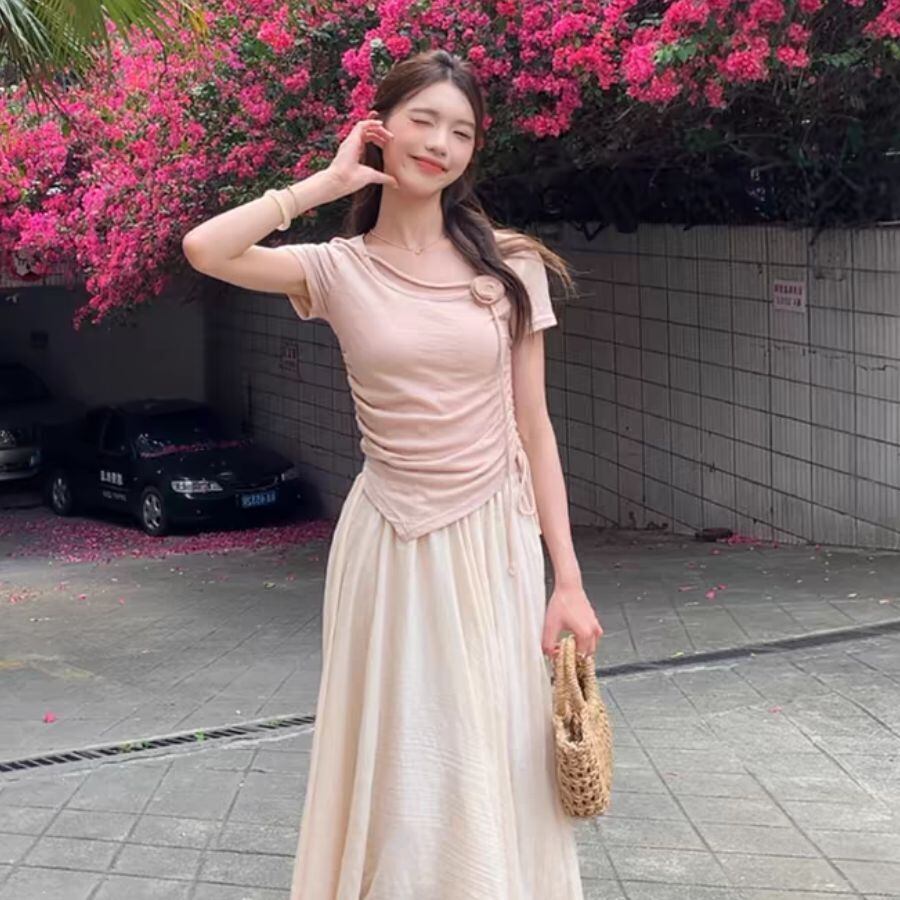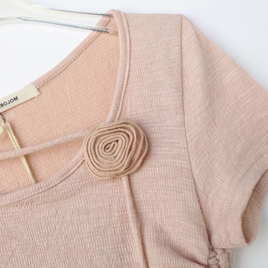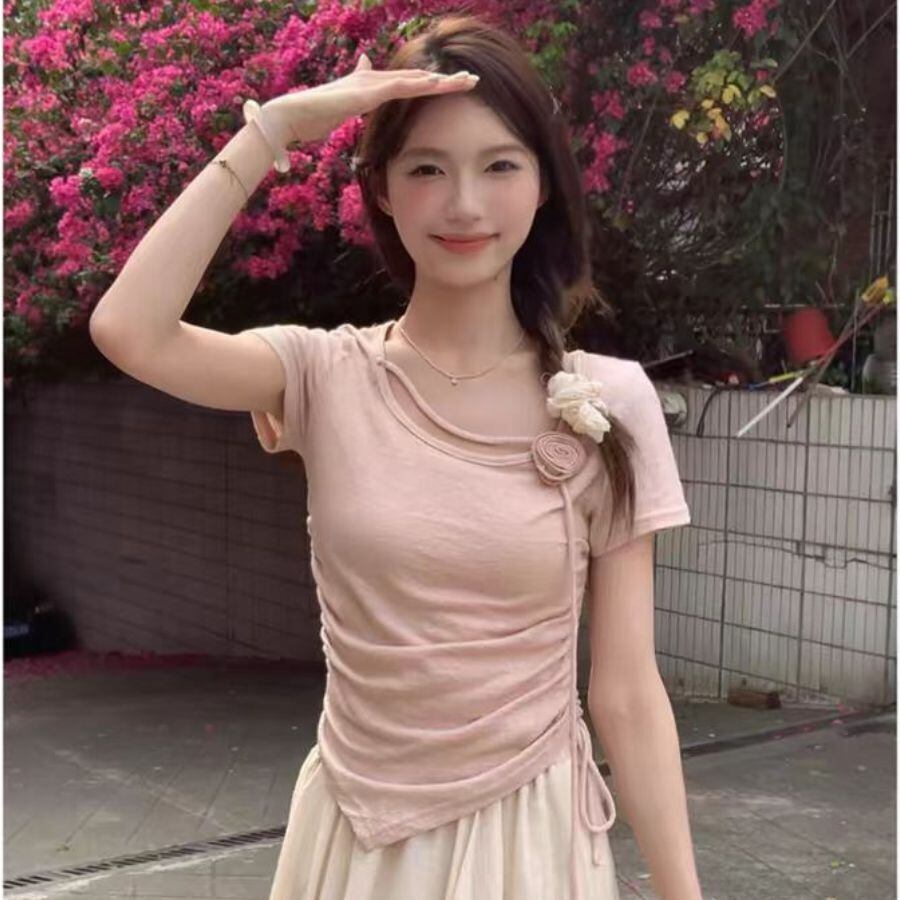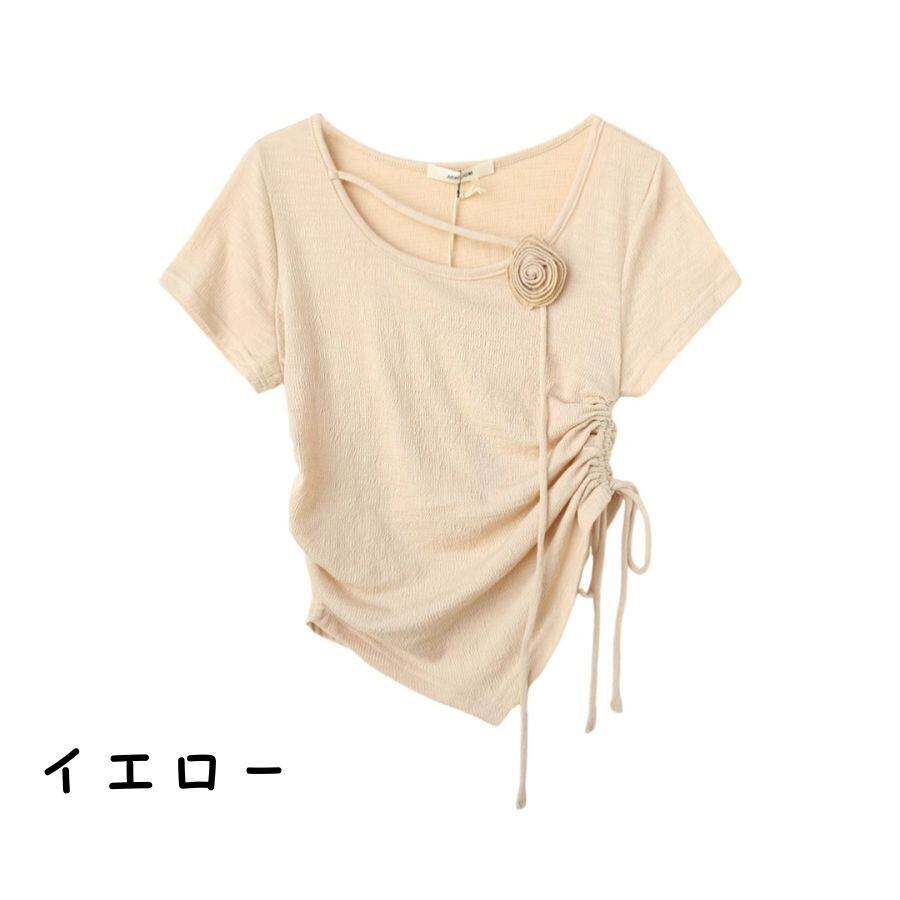 Tシャツ 夏 フレンチ スリムフィット 立体 ローズ 半袖 レディース カジュアル スリム トップス WFT271 Chillizen