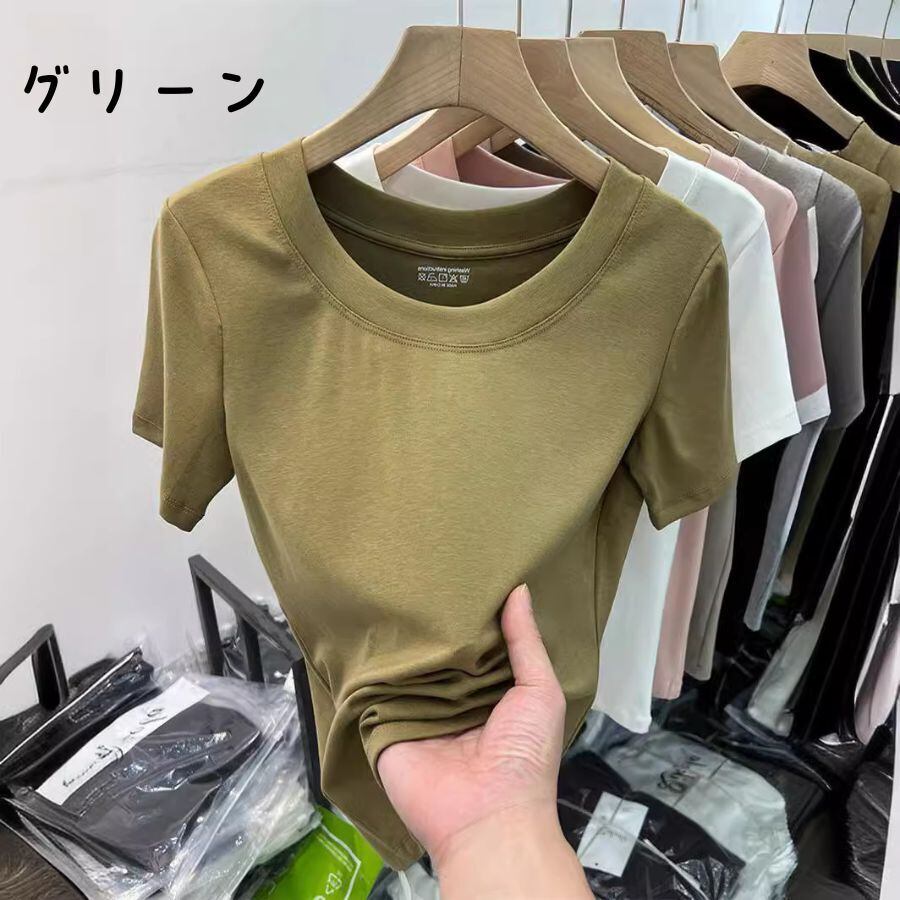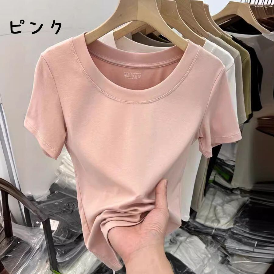 Tシャツ 夏 トップス 無地 半袖 丸首 シンプル 定番 カットソー レディース 薄手 可愛い かわいい WFT270 Chillizen